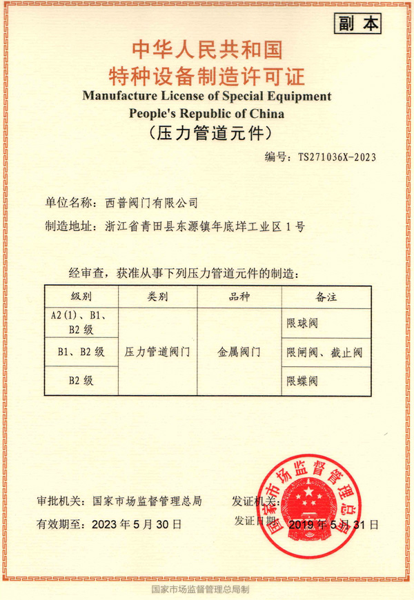 特种设备制造许可证